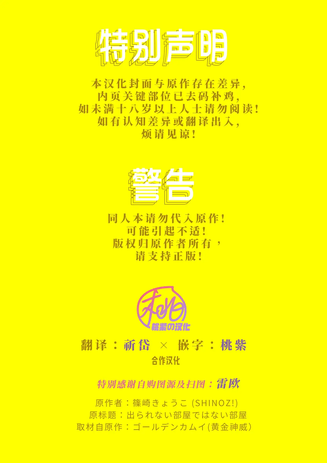 (超黄金暗号 2024)[SHINOZ! (篠崎きょうこ)] 出られない部屋ではない部屋 (ゴールデンカムイ) [中国翻訳] [無修正]