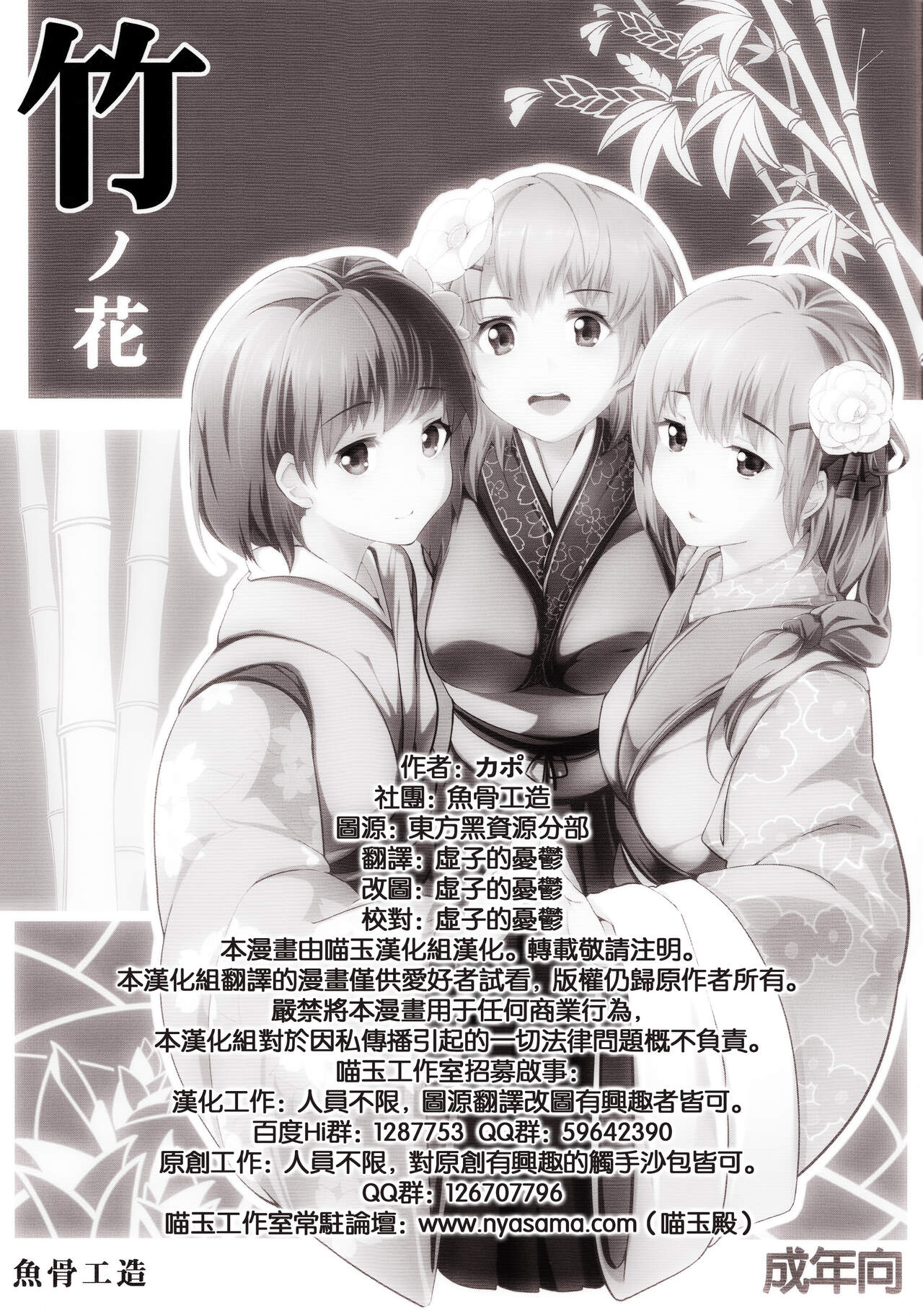 (C83) [魚骨工造 (カポ)] 竹ノ花 (東方Project) [中国翻訳]